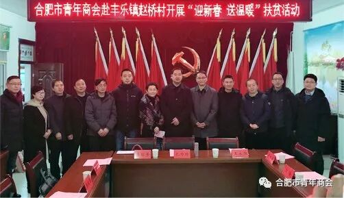 合肥市青年商会会长徐强在听取赵桥村脱贫攻坚工作情况汇报后表示企业界要深刻认识到扶贫工作的重要性,进一步增强责任感和使命感,在扶贫工作中勇于担当,敢于作为。商会为丰乐镇30户贫困户送上了大米、食用油、牛奶等生活物资和慰问金等。